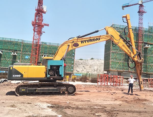 3、作業(yè)半徑擴大化 。因為挖掘機小臂不拆,它的作業(yè)半徑可以延長作業(yè)半徑2-3米,且仰角打孔、水平打孔、豎直打孔都可以實現(xiàn)。