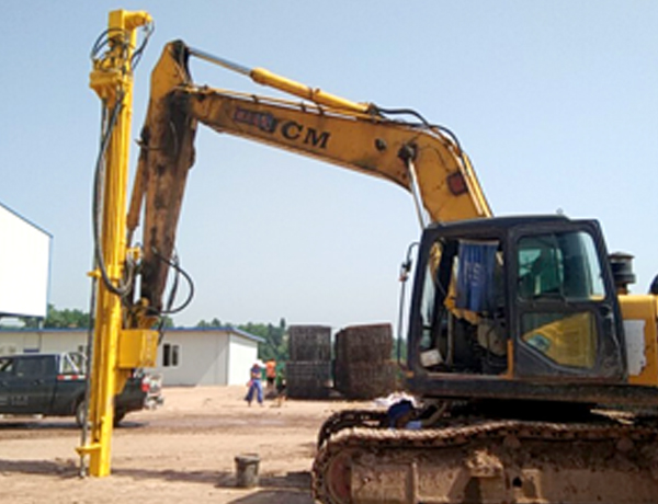 2、前后左右自由伸展,當(dāng)挖掘機(jī)在工地不平坦的情況下, 挖機(jī)手可根據(jù)位置不同調(diào)整鉆桿角度,保持90°垂直鉆孔。