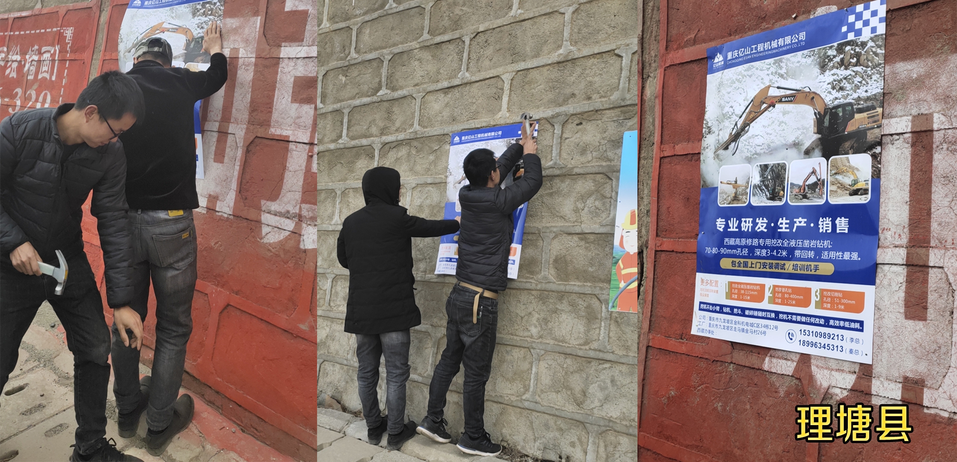 3月4日,公司李總率兩名工程師開著新買的四驅(qū)越野長城炮開啟西藏售后服務(wù)之旅,同時(shí)準(zhǔn)備籌建西藏辦事處。沿著蜿蜒的川藏線,帥哥們一路欣賞美景,一路將我們億山挖改鉆機(jī)的宣傳畫貼在沿途的石壁上、工地外的架子上、修理廠外的矮墻上,為了西藏開發(fā)和建設(shè),我們億山人愿意助一臂之力!在理塘、在巴塘、在芒康、在左貢、在八宿、在波密、在墨脫,到處都留下了我們工程師貼宣傳畫的身影!是的,他們來了,他們來了!為了更好的服務(wù)于客戶,億山人來到西藏,扎根西藏!愿西藏的明天更美好!