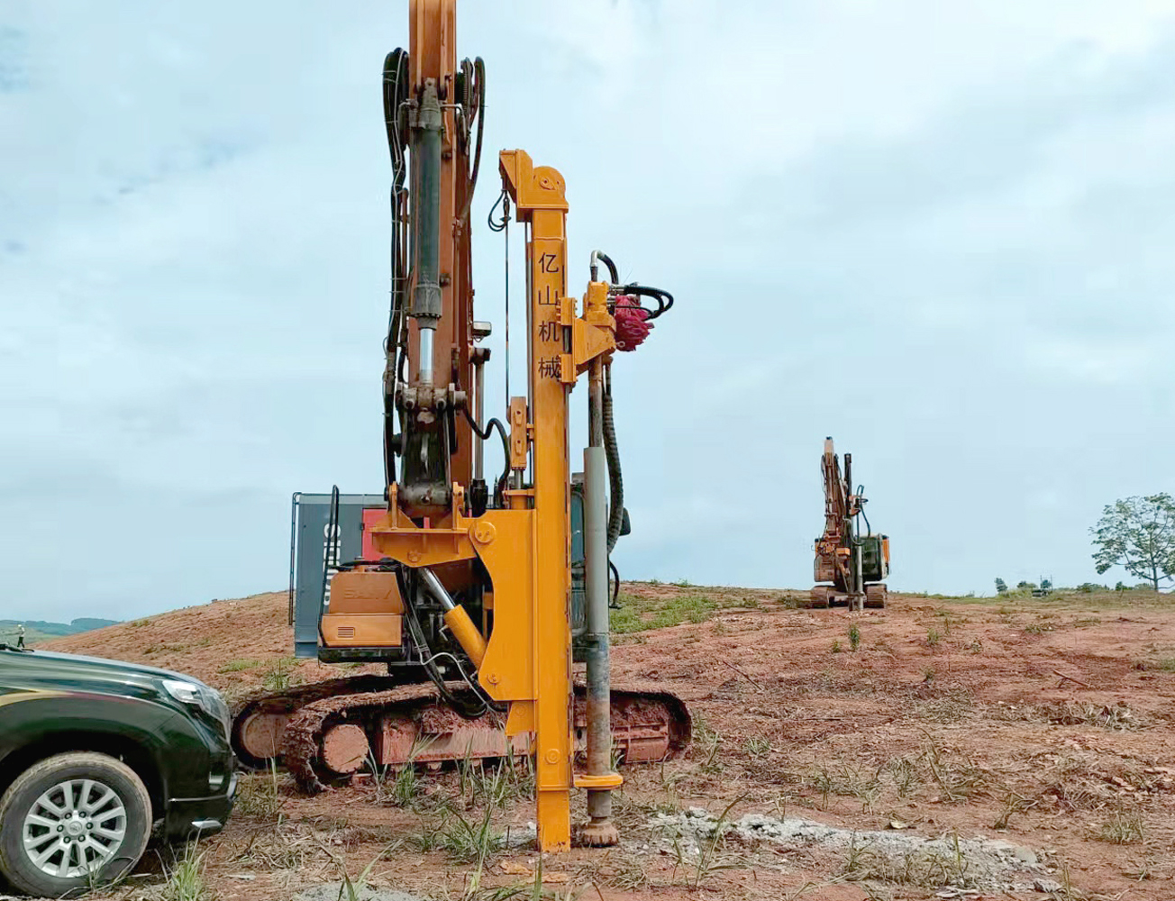 億山挖改潛孔鉆機(jī)各系列產(chǎn)品,廣泛適用于花崗巖、石灰石、大理石、火山石、青石、玄武巖、頁巖、砂巖、風(fēng)化巖、泥巖等所有巖石的各種爆破前鉆孔作業(yè);借助挖機(jī)的操作靈活性也可用于錨桿鉆孔以及孔徑較大的光伏孔;使用效率高于傳統(tǒng)的分體式潛孔鉆機(jī)。具操作簡易,設(shè)計(jì)人性化,感觀直接,實(shí)現(xiàn)挖掘機(jī)一機(jī)多用等特性。