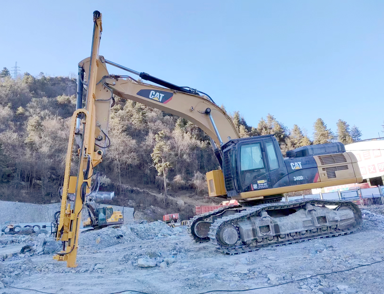 億山ES300挖改全液壓鑿巖機,廣泛適用于花崗巖、石灰石、大理石、火山石、青石、玄武巖等硬度較高的堅巖石的各種爆破前鉆孔作業(yè)(硬度F大于6級);可以借助挖機的操作靈活性用于錨桿鉆孔;也遠遠低于一體式鑿巖鉆機的采購價格。具操作簡易,設計人性化,感觀直接,實現(xiàn)挖掘機一機多用等特性。